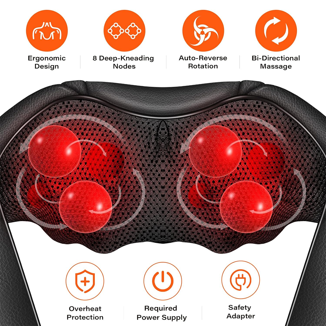 Grâce à sa forme ergonomique, l'appareil épouse confortablement les courbes naturelles du corps et cible les zones clés comme le cou, les épaules et le dos. Ses têtes de massage flexibles garantissent un massage efficace et confortable, adapté à vos besoins spécifiques.