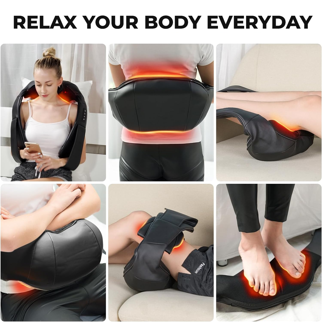 La conception adaptable du masseur chauffant procure un soulagement apaisant sur de nombreuses zones, de la nuque et des épaules aux pieds et à l'abdomen. Sa forme ergonomique épouse les contours de votre corps et cible efficacement les tensions musculaires là où elles sont nécessaires.
