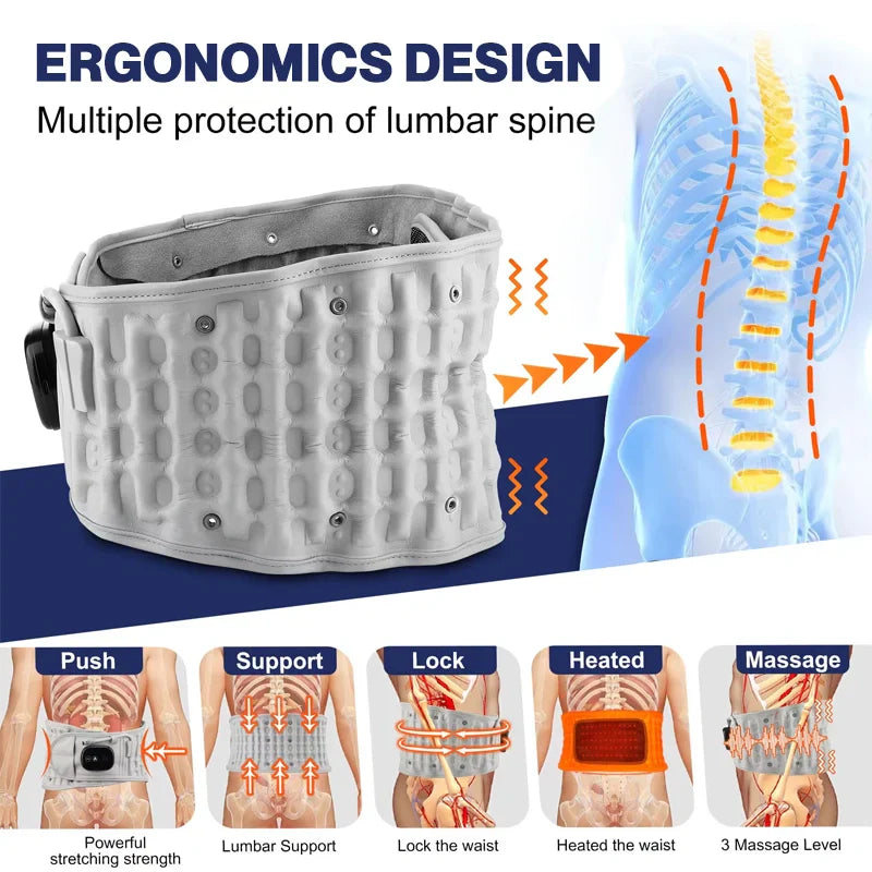 Équipée de chambres à air gonflables, cette ceinture offre un soutien lombaire personnalisé, soulageant la pression sur la colonne vertébrale et améliorant la posture. Idéale pour les personnes souffrant de maux de dos.