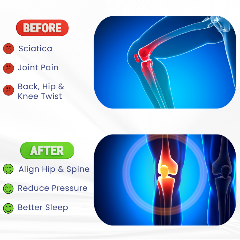 - Soulagement des points de pression : Conçu pour réduire le contact entre les genoux et les hanches.