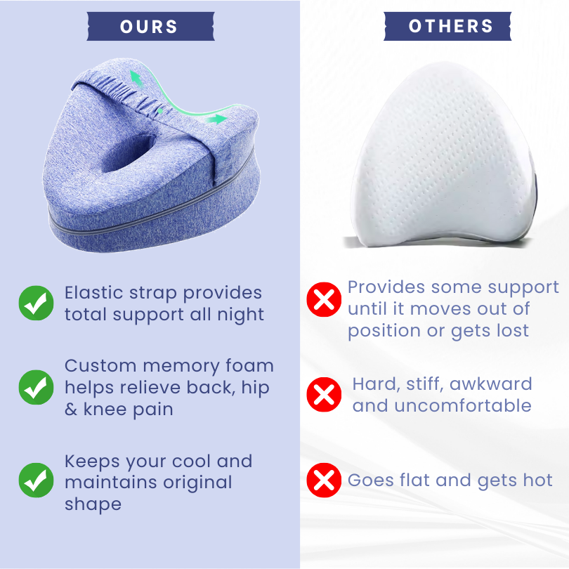 La mousse à mémoire de forme profilée s'adapte à vos jambes tout en offrant un soutien ferme et doux. Sa forme incurvée maintient vos genoux alignés, minimisant ainsi les torsions qui pourraient affecter le confort des hanches ou du bas du dos.