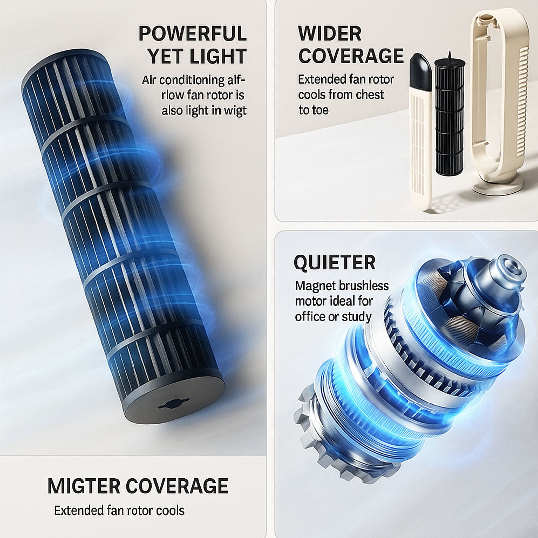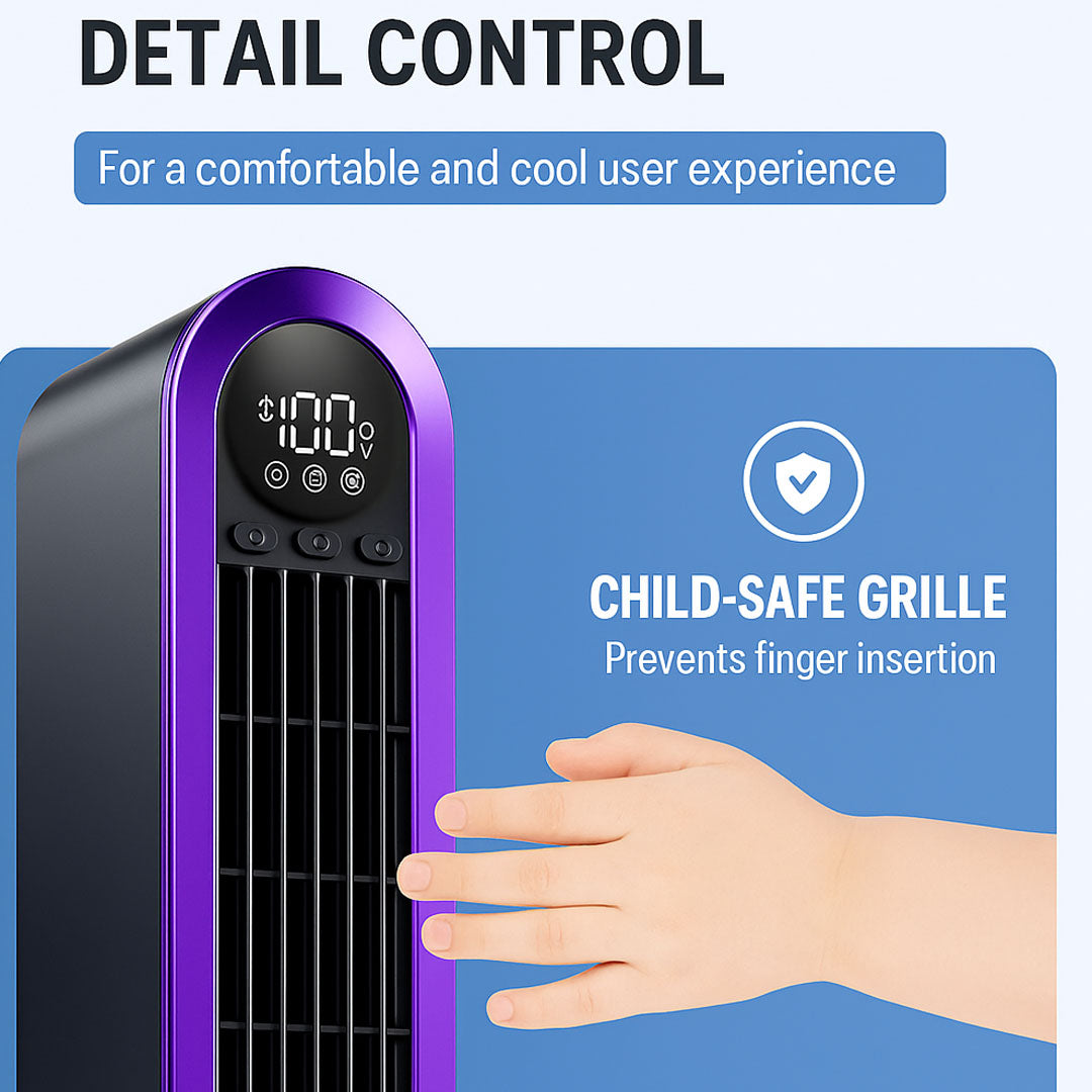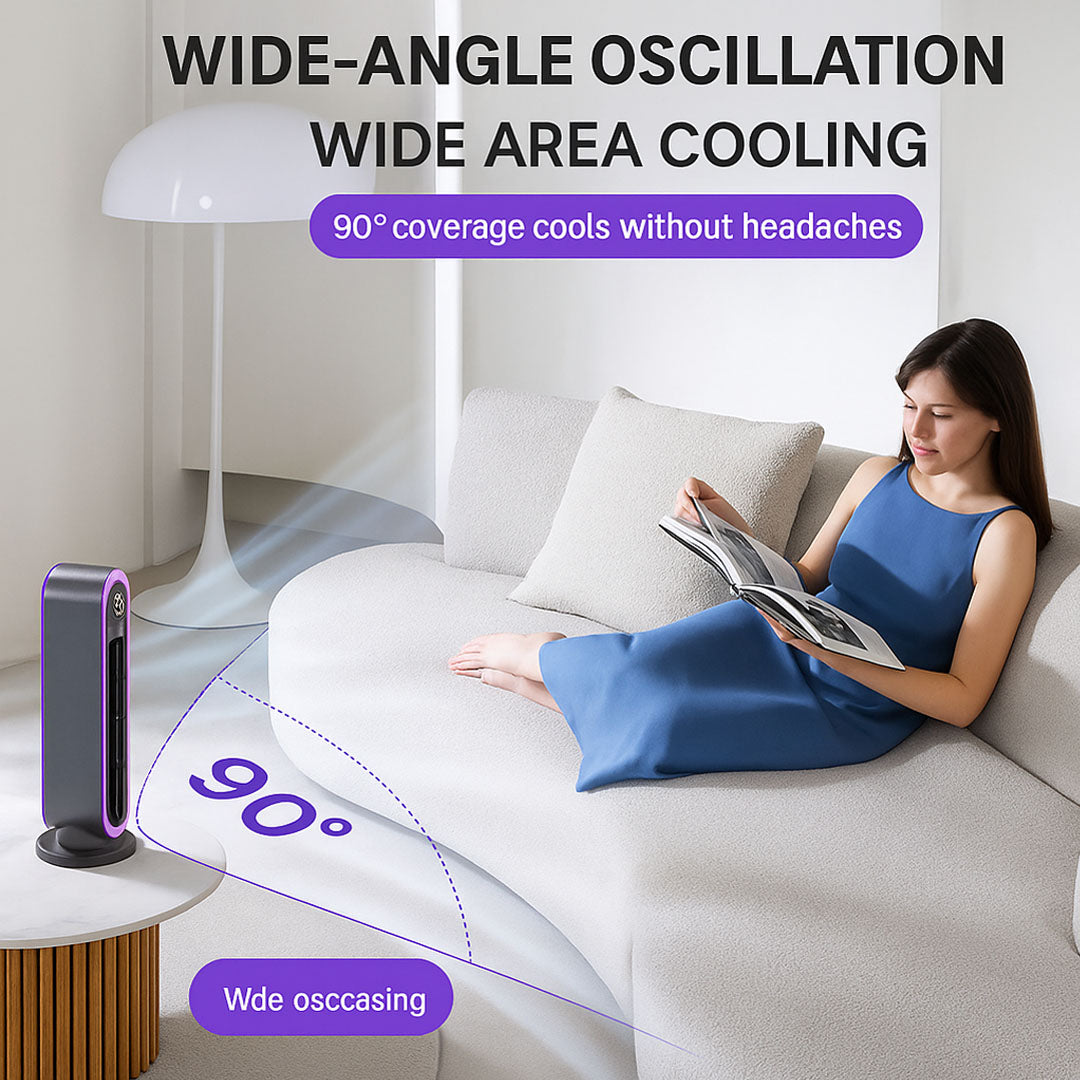 Stay cool and comfortable with this advanced 90° oscillating tower fan designed to optimize airflow across every corner of your room. Whether it's your bedroom, living area, or home office, this fan brings both performance and convenience in a compact, stylish form.