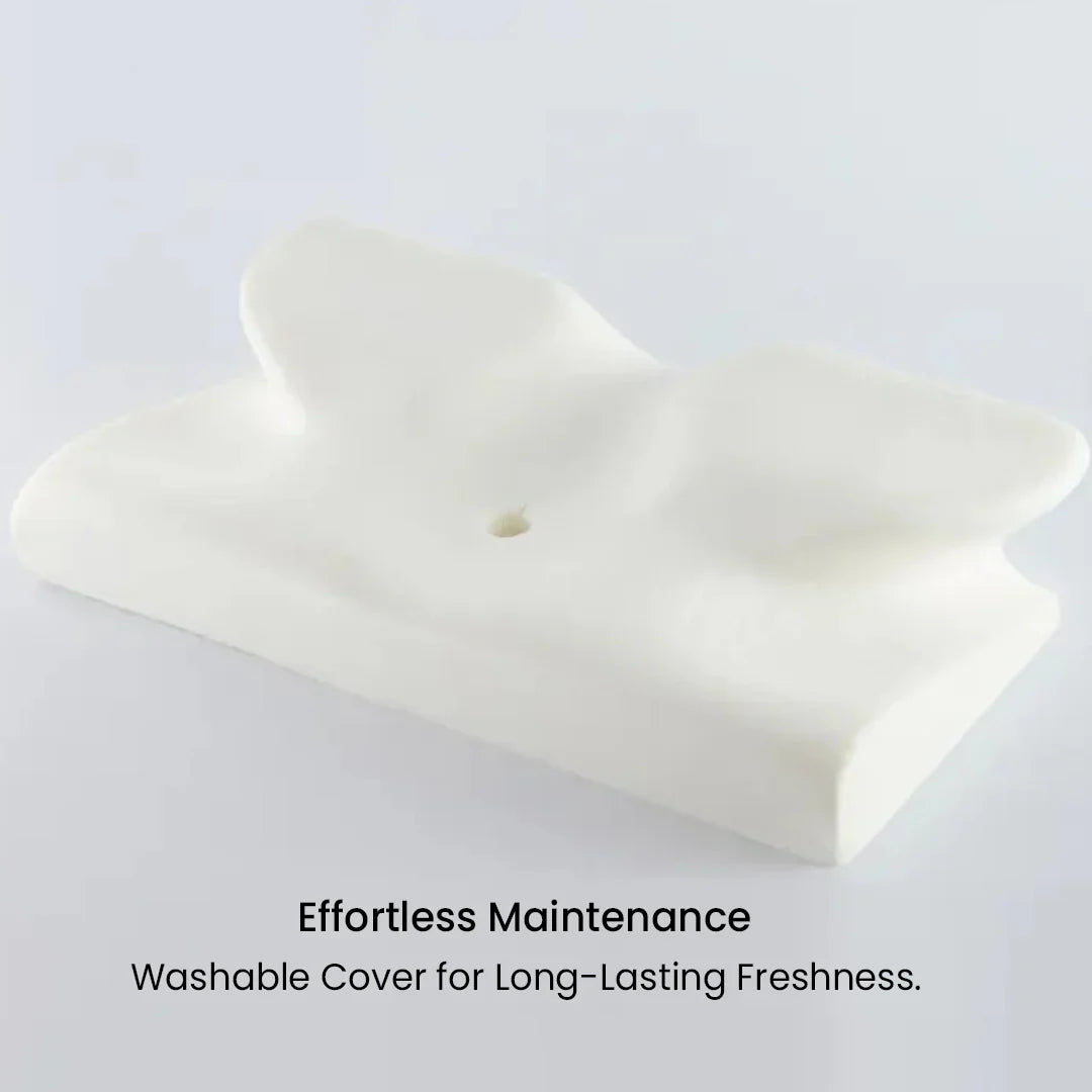 La forme profilée de l'oreiller favorise un bon alignement de la colonne vertébrale pour un sommeil plus profond et réparateur. Idéal pour les personnes souffrant de maux de dos, de tensions ou de raideurs aux épaules.