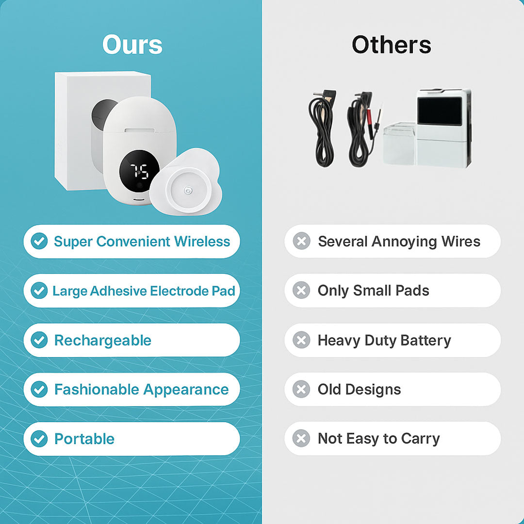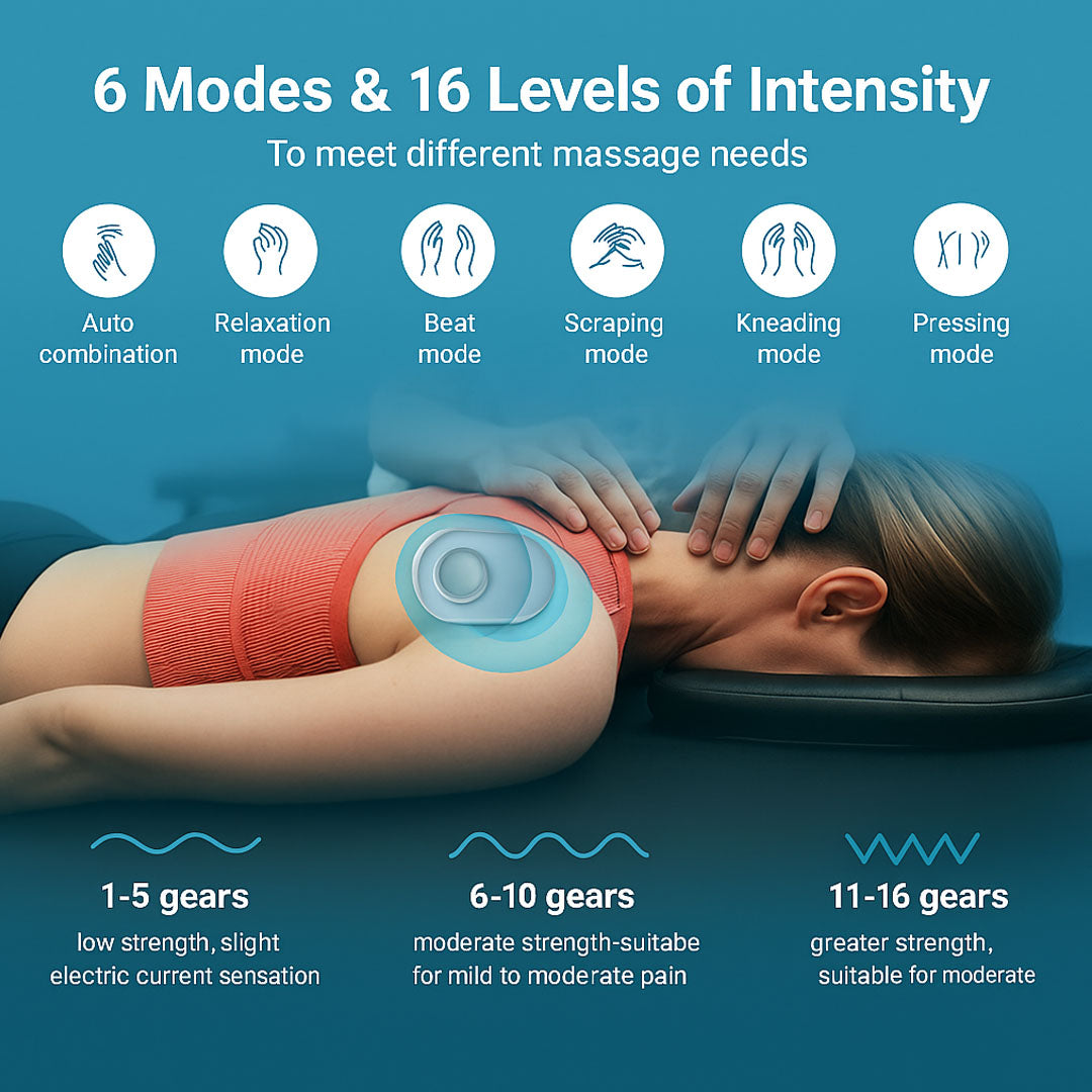 Inspiré de la thérapie TENS utilisée par les professionnels, cet appareil offre une solution sans médicament à l'inconfort et à la fatigue chroniques. Qu'il s'agisse de courbatures après l'entraînement ou de douleurs dues aux longues heures de bureau, cet outil non invasif vous aide à retrouver un confort optimal sans effets secondaires.