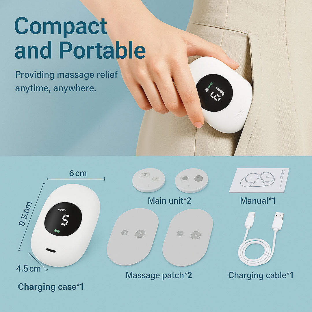 Plus besoin de vous encombrer de câbles ou de batteries externes. Le boîtier de charge intégré vous permet de garder vos appareils de massage prêts à l'emploi. Léger et sans fil, il est idéal pour les professionnels pressés, les voyageurs ou toute personne ayant besoin d'un soulagement rapide de la douleur en déplacement.