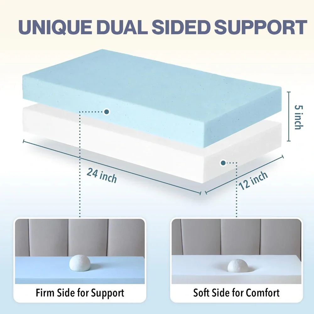 - Double face : Mousse à mémoire de forme gel (douce/fraîche) et mousse au charbon de bambou (ferme)